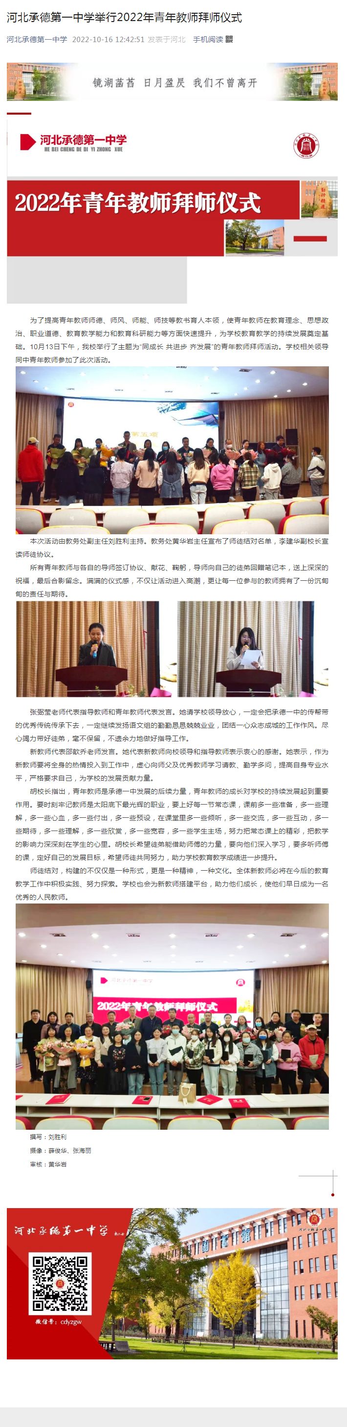 河北承德第一中學(xué)舉行2022年青年教師拜師儀式