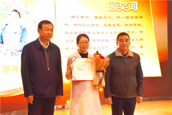 李建華副校長(zhǎng)宣讀獎(jiǎng)勵(lì)方案,明確多勞多得、優(yōu)績(jī)優(yōu)酬的基本獎(jiǎng)勵(lì)原則。學(xué)校領(lǐng)導(dǎo)為在高考及期末聯(lián)考中取得優(yōu)異成績(jī)的教研組、優(yōu)秀管理團(tuán)隊(duì)及狀元班教師頒發(fā)獎(jiǎng)狀。