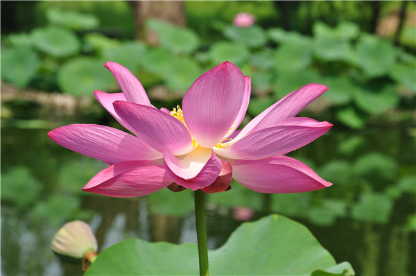 凌波仙子靜中芳,也帶酣紅學(xué)醉妝。一不留神,鏡湖清澈的一彎碧波在悠閑的錦鯉嘻戲之間,荷花之盛放,清靜而悠遠。讓夏日的鏡湖平添了幾分圣潔,一簇又一簇的荷花競相綻放,如那莘莘學(xué)子在一中美麗的校園中文質(zhì)彬彬,茁壯成長!銘石煙柳,與眾不同。雖沒有牡丹的雍榮華貴,沒有梅花的鐵骨錚錚,沒有水仙的玲瓏清秀,也沒有桂花的十里飄香。但她從不與百花爭春,只選擇最難耐的夏日,盡情地綻放,風越大,她越勇敢的挺直胸膛,為一中的師生送來絲絲清涼,陣陣幽香,為一中的校園添了幾多美景,增添了幾分神韻。她不懼高熱,外形清秀潔凈,出污泥而不染,濯清漣而不妖,正如一中教師那高貴的形象、堅貞的品質(zhì)。荷葉的輕語,溶解在鏡湖池水里。在盛熱的夏天,唯有她青澀地揚起笑臉,襯著露珠的清澈耀眼,給予一中學(xué)子們最淡雅的夏天。陽光燦爛,空氣清新,讓我們在鏡湖的荷塘邊,欣賞荷花的美麗和清香。