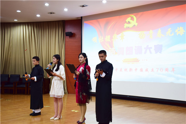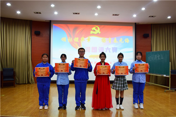 為慶祝中華人民共和國成立70周年,增強全體師生國家、民族自豪感,展現(xiàn)高中生良好精神風貌,營造“知書達禮,向上向善”的校園文化氛圍,也為適應新高考語文改革的需求,學校特舉行全校詩詞朗誦大賽。